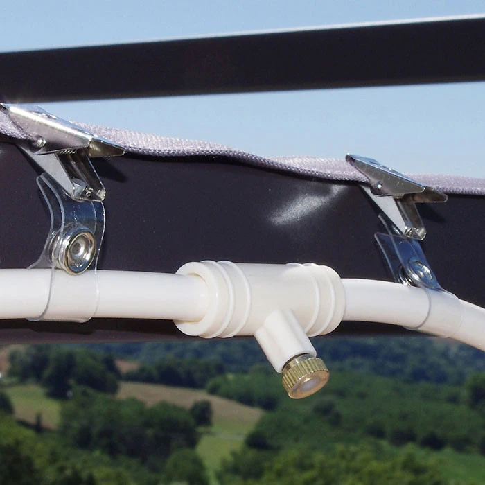 Le brumisateur de terrasse O’Fresh est long de 6 mètres. Il s’avérera très utile lors des périodes de fortes chaleurs.