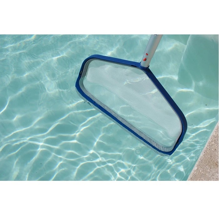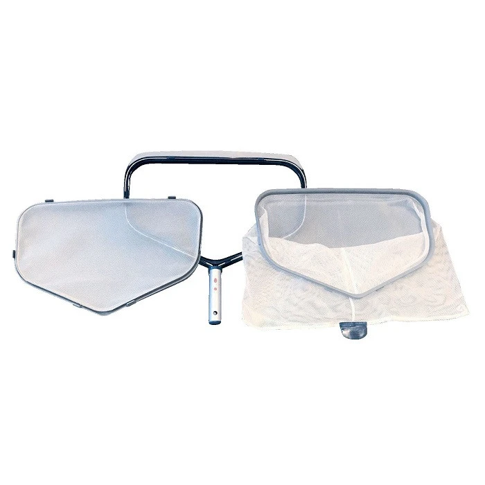 D’un seul clic le filet épuisette se met en place et permet de nettoyer avec un seul cadre, le fond et la surface de la piscine.