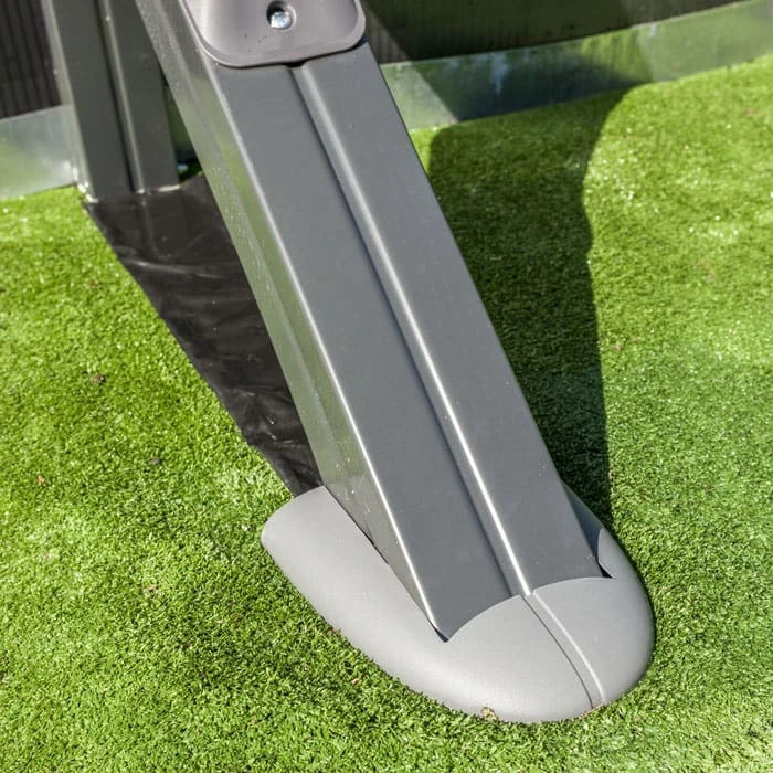 Sa structure en acier galvanisé de 45/100ème assurera une solidité à toute épreuve et contribuera à sa grande durabilité. Pour améliorer la stabilité du bassin, 2 renforts en acier sont présents de chaque côté de la piscine. Ainsi, n’ayez crainte, même rempli, le bassin ne bougera plus. Sa couleur gris anthracite donne un aspect moderne au bassin et se font dans tous les jardins.
