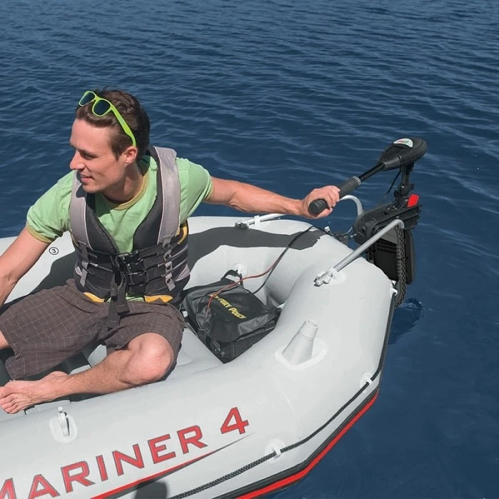 Naviguez en eau douce comme en eau salée avec le moteur de bateau électrique Intex de 0,6 CV.